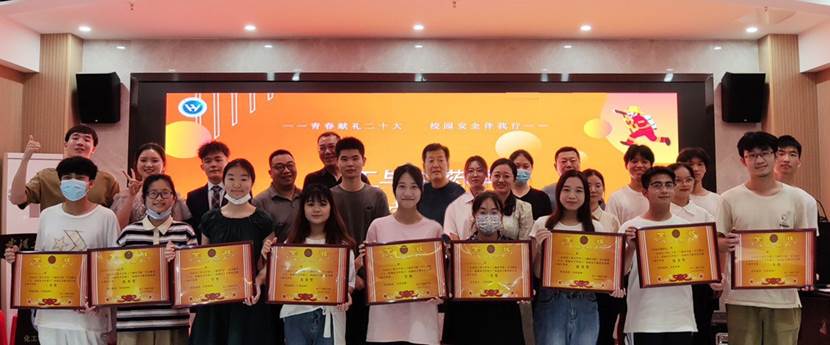 党委副书记周丹,校党委保卫部段淞、李锐应邀担任评委。学院辅导员出席了活动,各参赛队伍及学生代表现场观看。