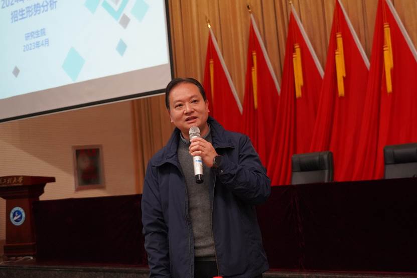 田勇就近几年学校的考研就业形势和毕业生发展状况进行了分析,介绍了学校和学院提供的多样化个性化就业服务。他指出学院要加强对毕业学生的精准细致指导,努力提升学生职业生涯规划和就业能力,塑造竞争优势。