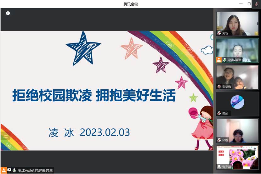凌冰主要从认识校园欺凌、了解欺凌角色、怎样面对欺凌三个方面展开讲座,用生动有趣的图片和事例帮助小朋友们辨认校园欺凌与正常嬉闹的区别,教会同学们保护自身安全、树立自信的方法。同时也让陪同听课的家长们了解到欺凌不仅仅是力量不对等致使身体受到伤害,还存在于言语、社交、网络、性别、财物之间,这些欺凌形式是不易被发现的,家长应多关注孩子们的心理健康,进行适当的心理干预,帮助他们建立积极的价值观。