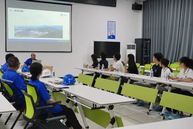 上午九时,实践团到达南磷公司,总经理助理吕忠华对实践团成员表示热烈欢迎。紧接着吕忠华向实践团成员详细介绍了南磷公司的发展历史。扎根南漳20余年,依靠丰富的磷矿,龙蟒磷制品有限责任公司先后投资30亿元进行产业改造升级,现已成为国内单系统能力最大的、年产磷酸盐50万吨的大型生产企业,其产量占国内市场份额近20%,并已成为国家工业培育品牌的试点企业、国内产业细分领域领军企业。